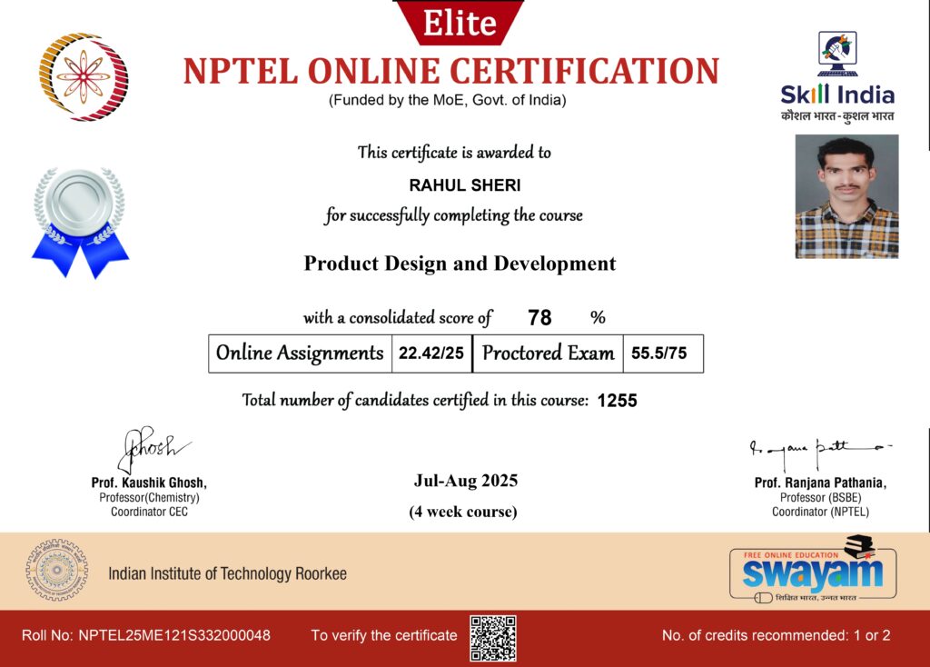 NPTEL SWAYAM Certification – Product Design & Development