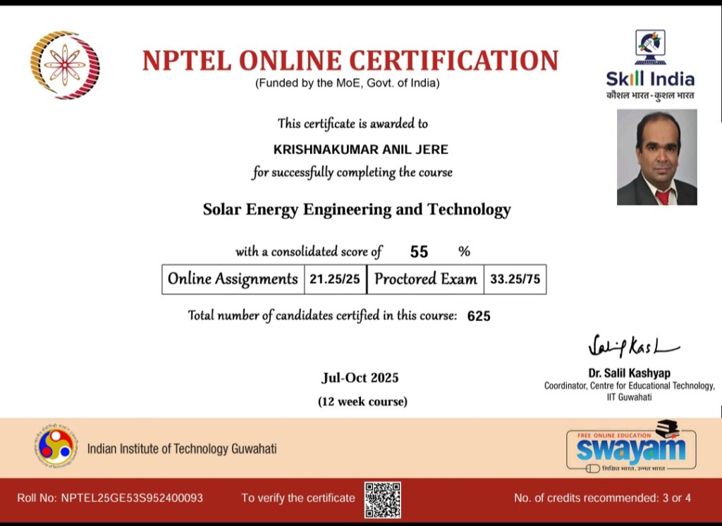NPTEL SWAYAM Certification – Solar Energy Engineering & Technology
